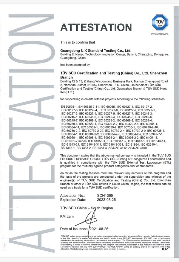 TUV南德目擊測試授權實驗室